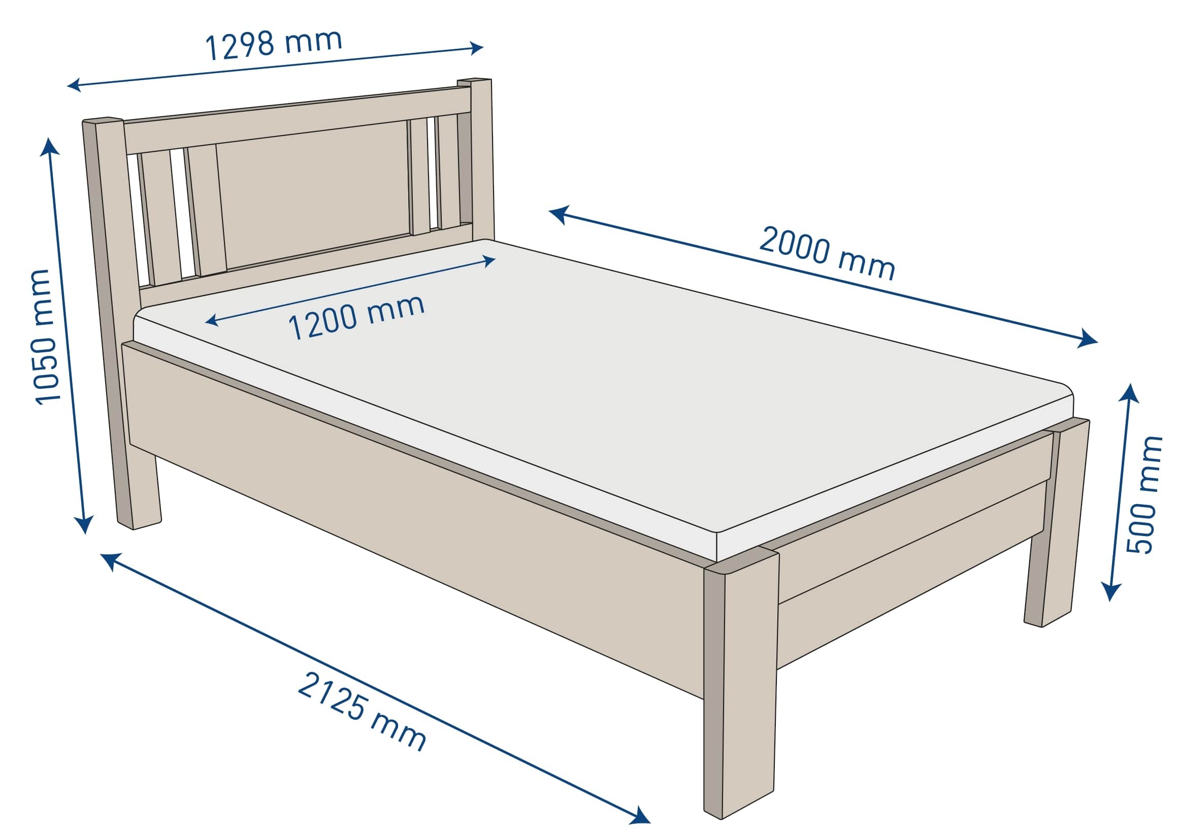 Celomasívna posteľ z prírodného dubu Sion H2, D1, 120x200 cm