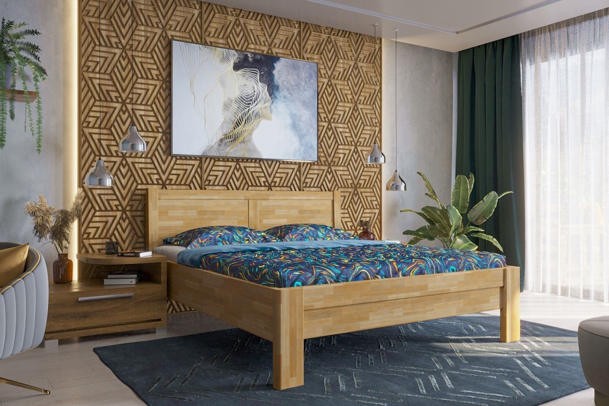 Celomasívna posteľ z prírodného buku Sion H3, BK1, 160x200 cm