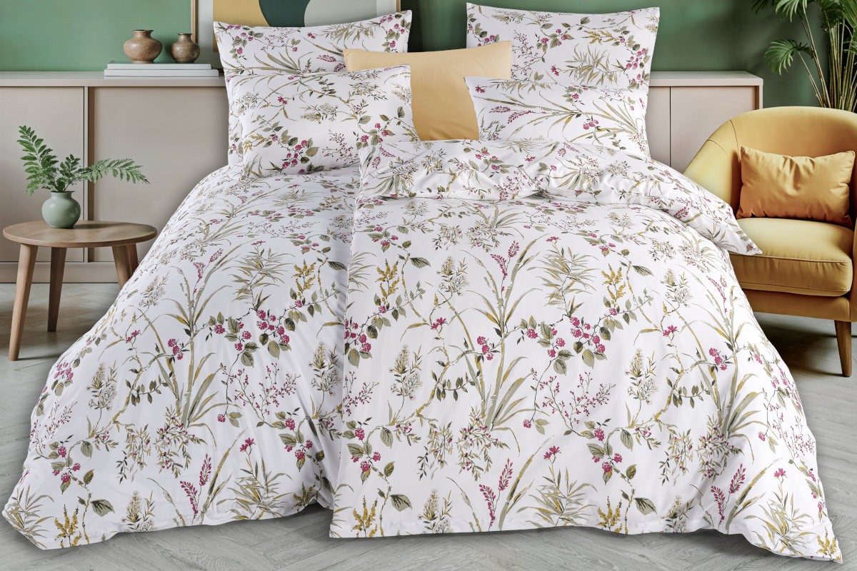 Obliečky Marianna sú vyrobené z kvalitnej bavlny, ktorej vlákna sú jemné a príjemné na dotyk. Sympatický vzor v podobe rastlín na bielom pozadí skvele doplní každú spálňu. Materiál skvele odvádza vlhkosť, takmer sa nekrčí a dlhodobo si zachováva svoj tvar aj farbu. Akonáhle do neho oblečiete svoje periny, už nebudete chcieť z postele vstať. Jemnosť bavlny vás doslova objíme a dopraje vám dokonalý odpočinok.
