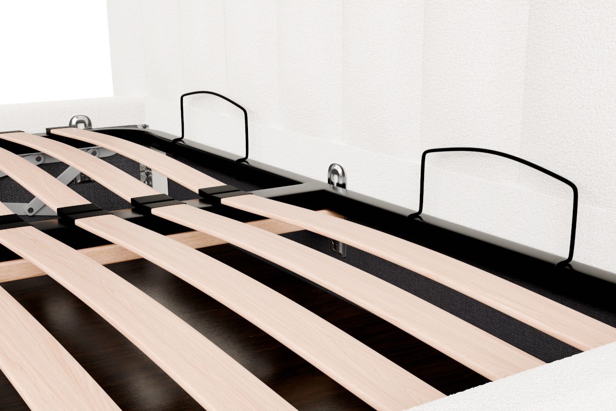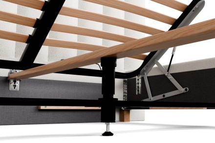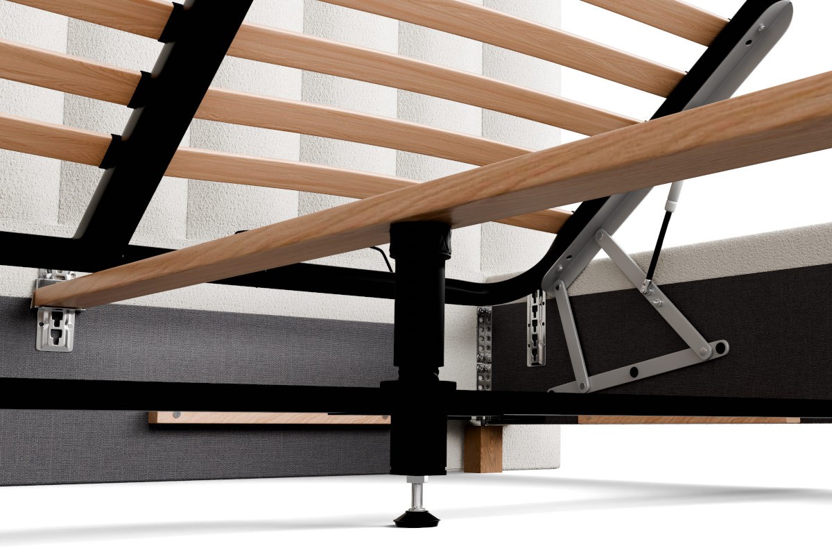 Rámová základňa FRAME STORAGE obsahuje úložný priestor, do ktorého môžete uložiť všetko, čo budete potrebovať. Dosky sú vyrobené z vysokokvalitnej MDF dosky, ktorá je odolná, a sú umiestnené na kovovej výstuhe základne pre zvýšenie nosnosti a stability. Tento typ základne neobsahuje rošt, takže je vhodný napríklad pre zákazníkov, ktorí uprednostňujú polohovateľné rošty.