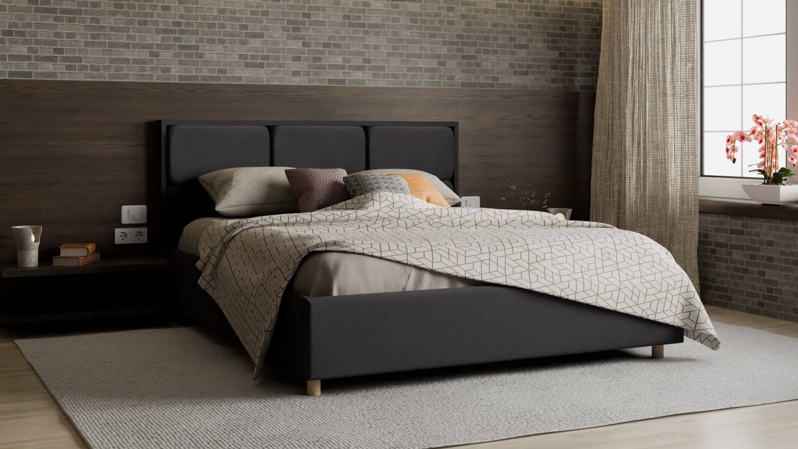 Čalúnená posteľ Aurora Frame Standard, Wooden Black, Savanna Rose Brown, 180x200 cm