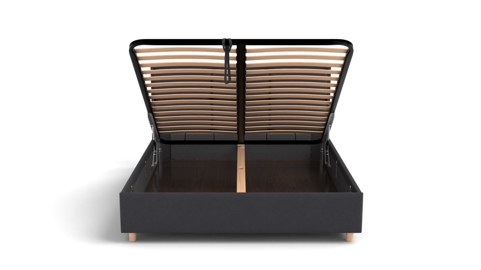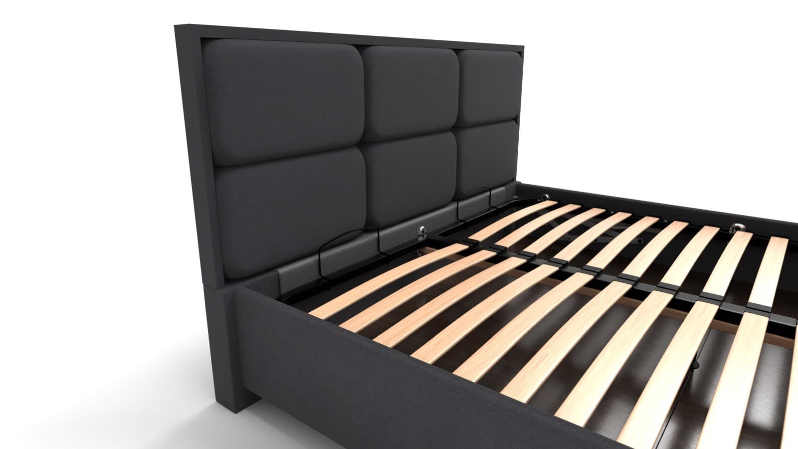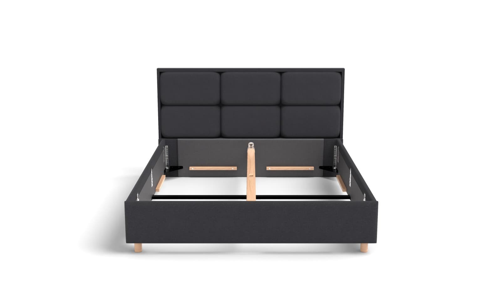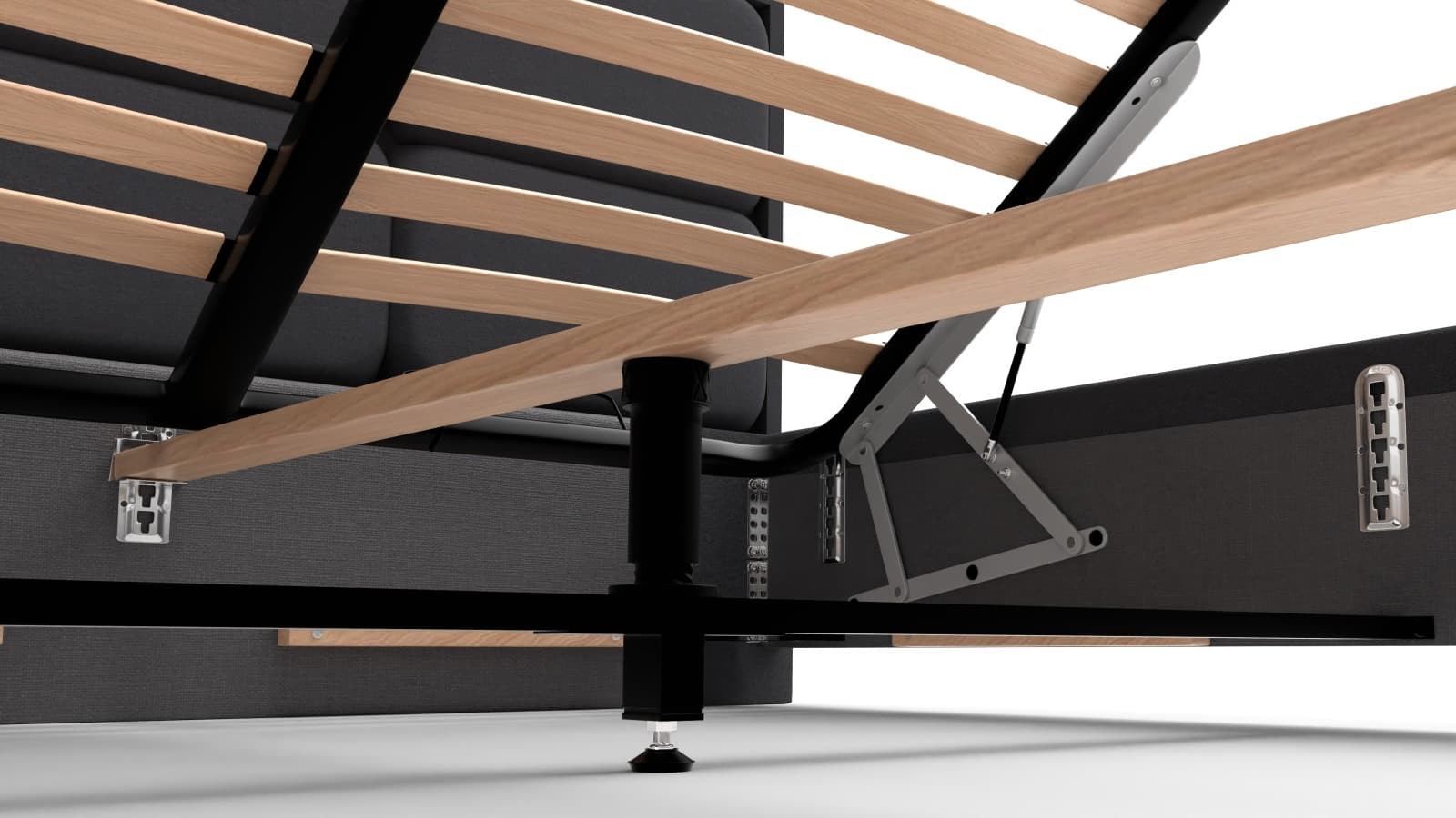 Rámová základňa FRAME STORAGE obsahuje úložný priestor, do ktorého môžete uložiť všetko, čo budete potrebovať. Dosky sú vyrobené z vysokokvalitnej MDF dosky, ktorá je odolná, a sú umiestnené na kovovej výstuhe základne pre zvýšenie nosnosti a stability. Tento typ základne neobsahuje rošt, takže je vhodný napríklad pre zákazníkov, ktorí uprednostňujú polohovateľné rošty.