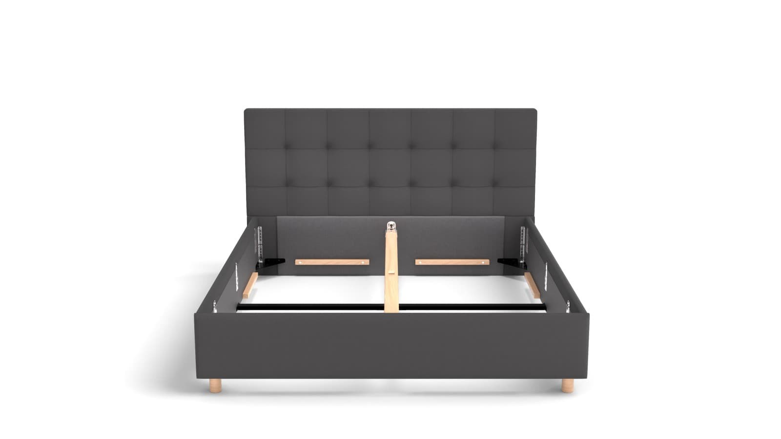Rámová základňa FRAME STORAGE obsahuje úložný priestor, do ktorého môžete uložiť všetko, čo budete potrebovať. Dosky sú vyrobené z vysokokvalitnej MDF dosky, ktorá je odolná, a sú umiestnené na kovovej výstuhe základne pre zvýšenie nosnosti a stability. Tento typ základne neobsahuje rošt, takže je vhodný napríklad pre zákazníkov, ktorí uprednostňujú polohovateľné rošty.