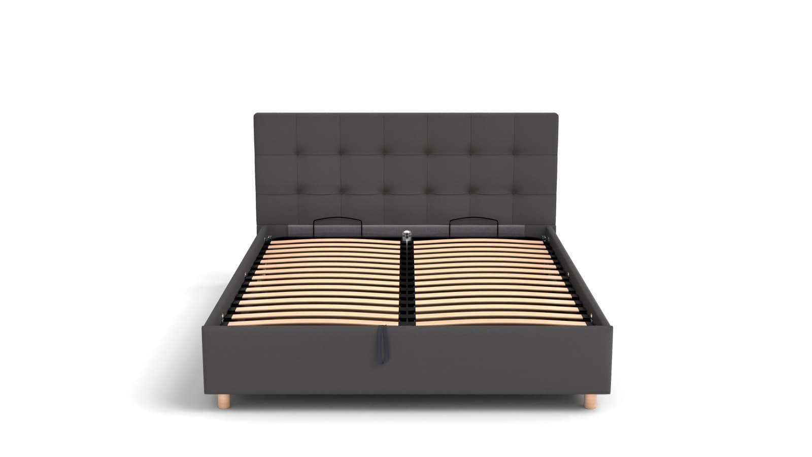 Rámová základňa FRAME STORAGE obsahuje úložný priestor, do ktorého môžete uložiť všetko, čo budete potrebovať. Dosky sú vyrobené z vysokokvalitnej MDF dosky, ktorá je odolná, a sú umiestnené na kovovej výstuhe základne pre zvýšenie nosnosti a stability. Tento typ základne neobsahuje rošt, takže je vhodný napríklad pre zákazníkov, ktorí uprednostňujú polohovateľné rošty.