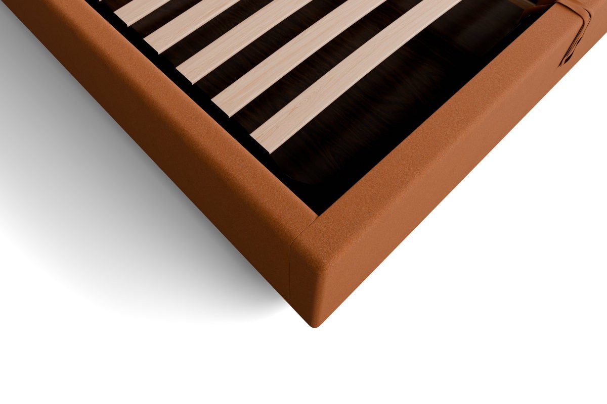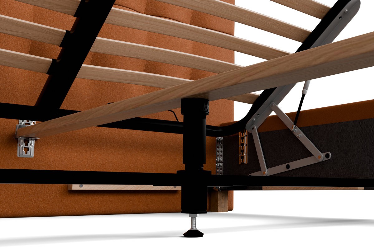 Rámová základňa FRAME STORAGE obsahuje úložný priestor, do ktorého môžete uložiť všetko, čo budete potrebovať. Dosky sú vyrobené z vysokokvalitnej MDF dosky, ktorá je odolná, a sú umiestnené na kovovej výstuhe základne pre zvýšenie nosnosti a stability. Tento typ základne neobsahuje rošt, takže je vhodný napríklad pre zákazníkov, ktorí uprednostňujú polohovateľné rošty.