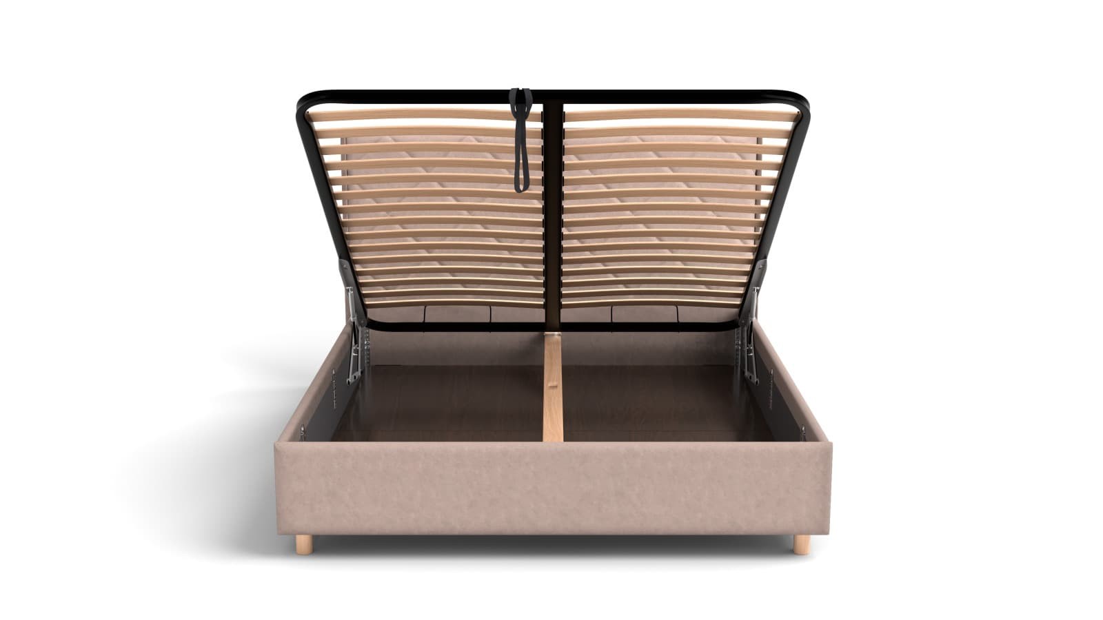 Základňa FRAME LIFT je komplexným riešením pre vašu spálňu, rám obsahuje úložný priestor a rošt na posteľ typu LIFT, ktorý umožňuje prístup práve do úložných priestorov. Dosky ÚP sú umiestnené na kovovej podpere, ktorá zabezpečuje stabilitu a odolnosť postele. Rošt je k základni pripevnený pomocou plynových piestov, ktoré pri manipulácii nevydávajú žiadne nepríjemné zvuky a ich používanie je veľmi pohodlné.