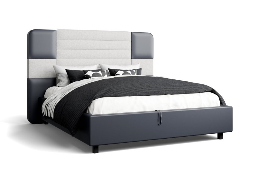 Čelo postele Majestic vás upúta hneď na prvý pohľad. Koncepcia dvoch kontrastných farieb a obdĺžnikových tvarov pôsobín dominantne a luxusne. Čelo postele podtrhuje jej moderný štýl.