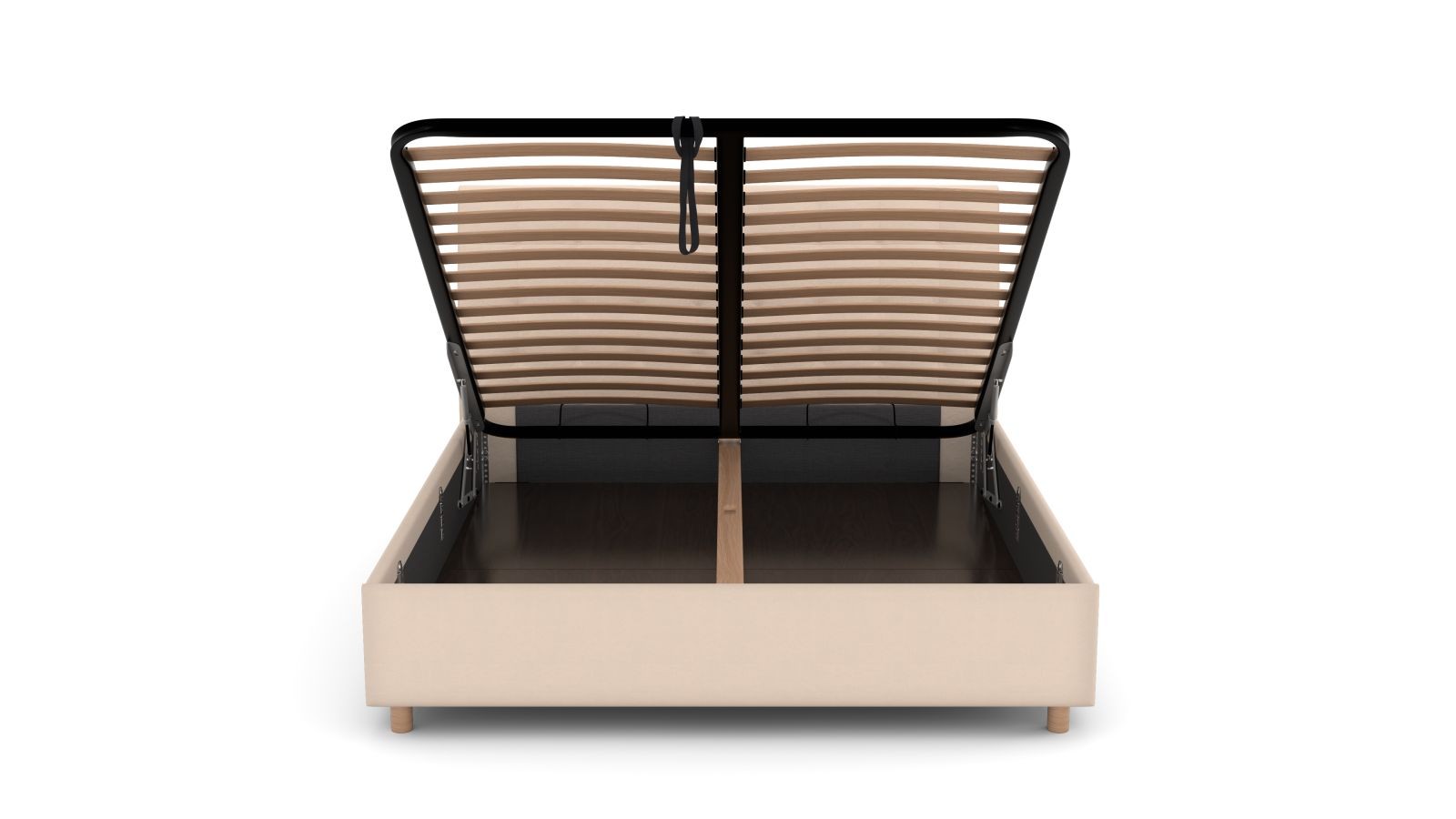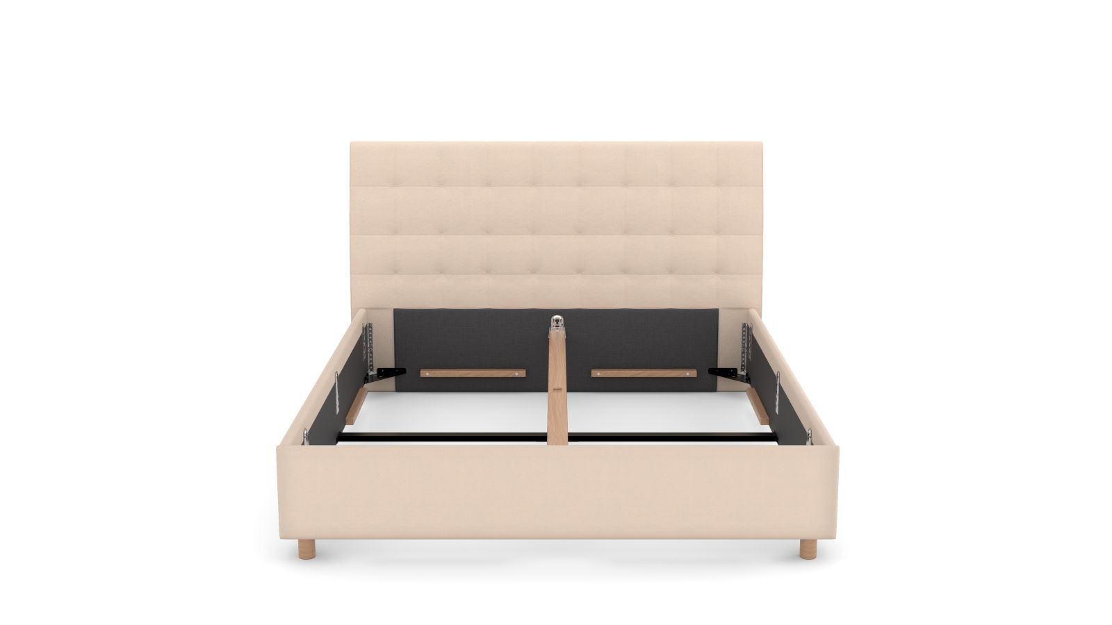 Rámová základňa FRAME STORAGE obsahuje úložný priestor, do ktorého môžete uložiť všetko, čo budete potrebovať. Dosky sú vyrobené z vysokokvalitnej MDF dosky, ktorá je odolná, a sú umiestnené na kovovej výstuhe základne pre zvýšenie nosnosti a stability. Tento typ základne neobsahuje rošt, takže je vhodný napríklad pre zákazníkov, ktorí uprednostňujú polohovateľné rošty.