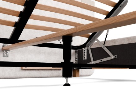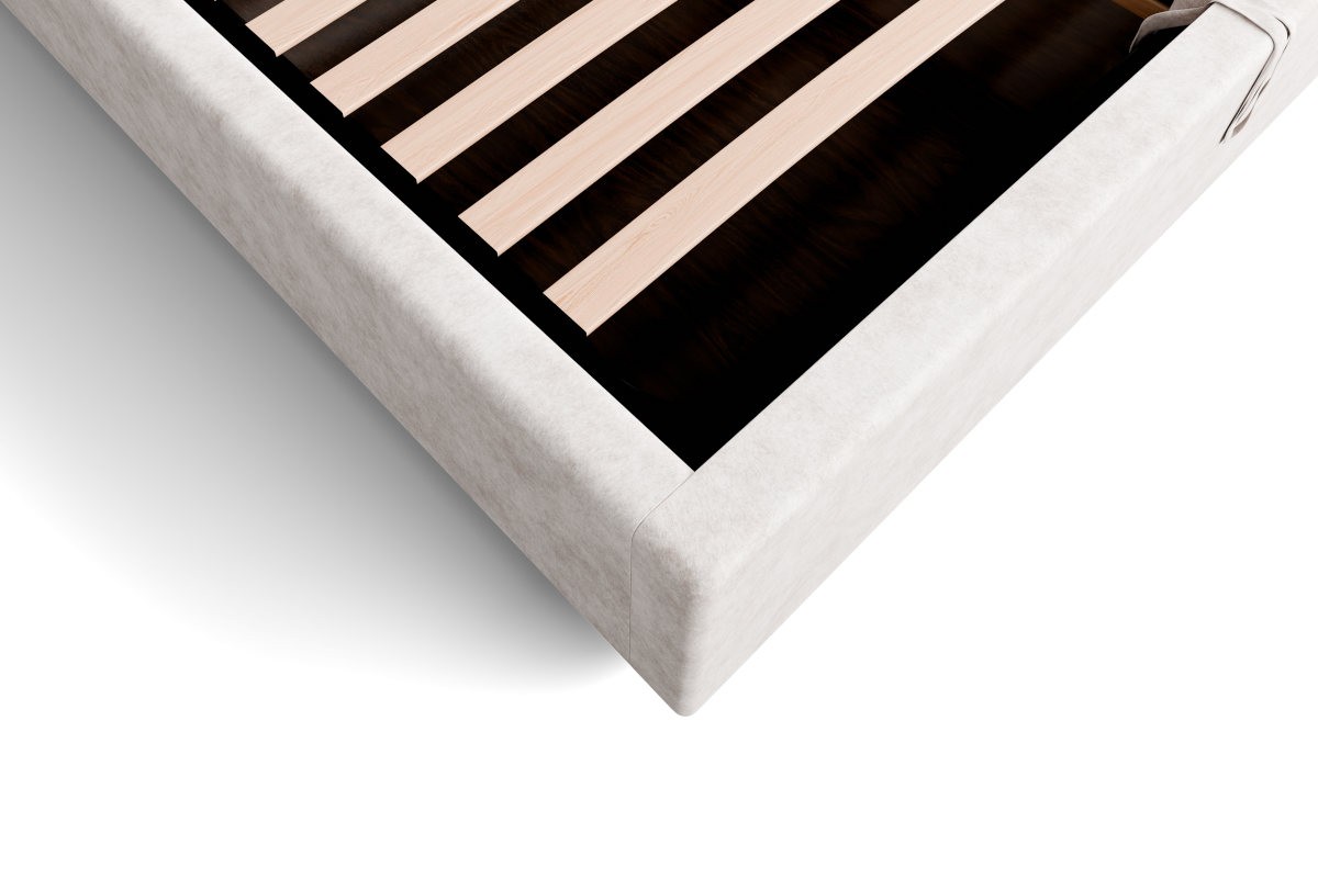 Základňa FRAME LIFT je komplexným riešením pre vašu spálňu, rám obsahuje úložný priestor a rošt na posteľ typu LIFT, ktorý umožňuje prístup práve do úložných priestorov. Dosky ÚP sú umiestnené na kovovej podpere, ktorá zabezpečuje stabilitu a odolnosť postele. Rošt je k základni pripevnený pomocou plynových piestov, ktoré pri manipulácii nevydávajú žiadne nepríjemné zvuky a ich používanie je veľmi pohodlné.