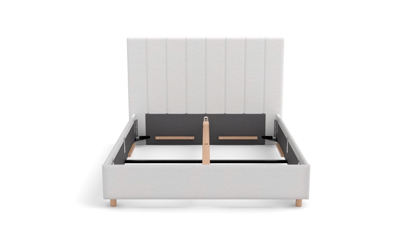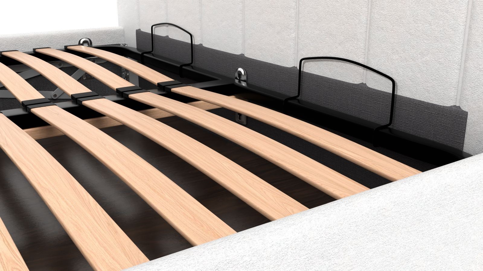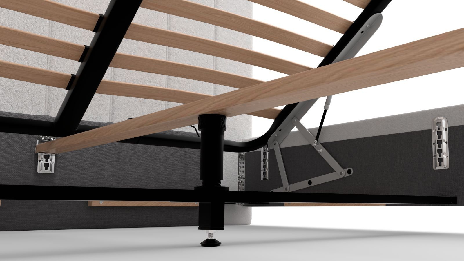 Rámová základňa FRAME STORAGE obsahuje úložný priestor, do ktorého môžete uložiť všetko, čo budete potrebovať. Dosky sú vyrobené z vysokokvalitnej MDF dosky, ktorá je odolná, a sú umiestnené na kovovej výstuhe základne pre zvýšenie nosnosti a stability. Tento typ základne neobsahuje rošt, takže je vhodný napríklad pre zákazníkov, ktorí uprednostňujú polohovateľné rošty.