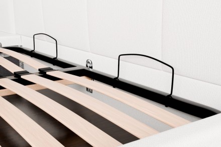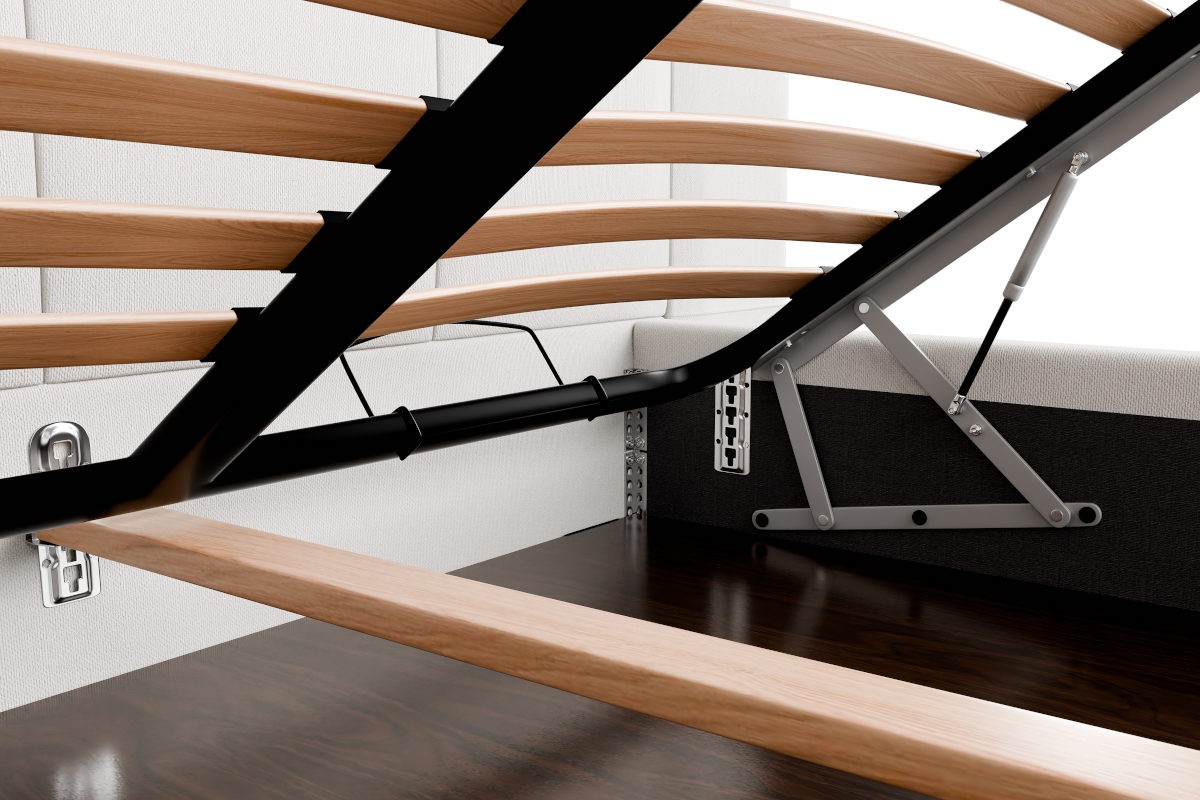 Základňa FRAME LIFT je komplexným riešením pre vašu spálňu, rám obsahuje úložný priestor a rošt na posteľ typu LIFT, ktorý umožňuje prístup práve do úložných priestorov. Dosky ÚP sú umiestnené na kovovej podpere, ktorá zabezpečuje stabilitu a odolnosť postele. Rošt je k základni pripevnený pomocou plynových piestov, ktoré pri manipulácii nevydávajú žiadne nepríjemné zvuky a ich používanie je veľmi pohodlné.