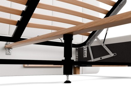 Rámová základňa FRAME STORAGE obsahuje úložný priestor, do ktorého môžete uložiť všetko, čo budete potrebovať. Dosky sú vyrobené z vysokokvalitnej MDF dosky, ktorá je odolná, a sú umiestnené na kovovej výstuhe základne pre zvýšenie nosnosti a stability. Tento typ základne neobsahuje rošt, takže je vhodný napríklad pre zákazníkov, ktorí uprednostňujú polohovateľné rošty.