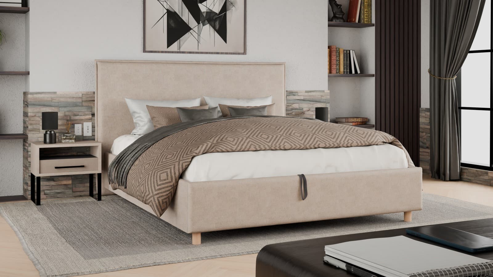 Čalúnená posteľ Valentino Frame Lift, Wooden Oak, Queens Beige, 160x200 cm