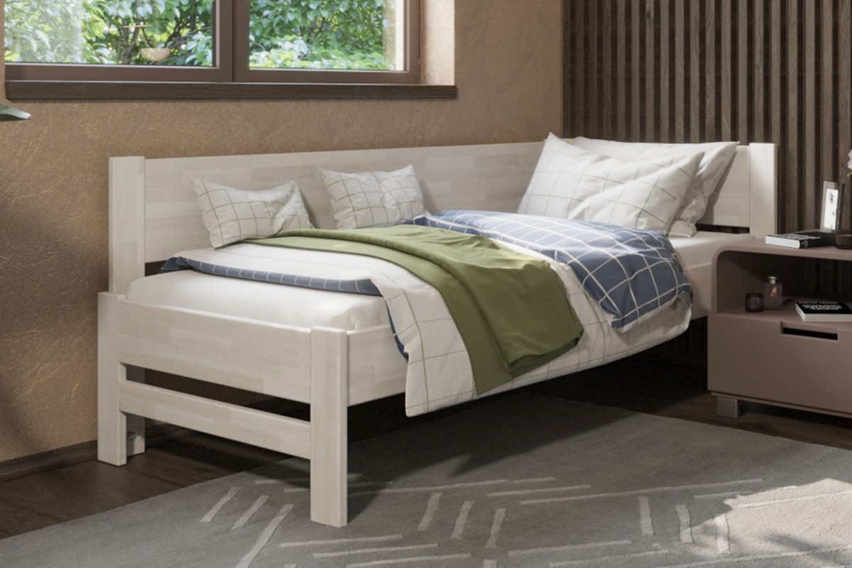 Jednolôžková rohová drevená posteľ Amelia, ľavý roh, prevedenie BO102 biela, 90x200 cm