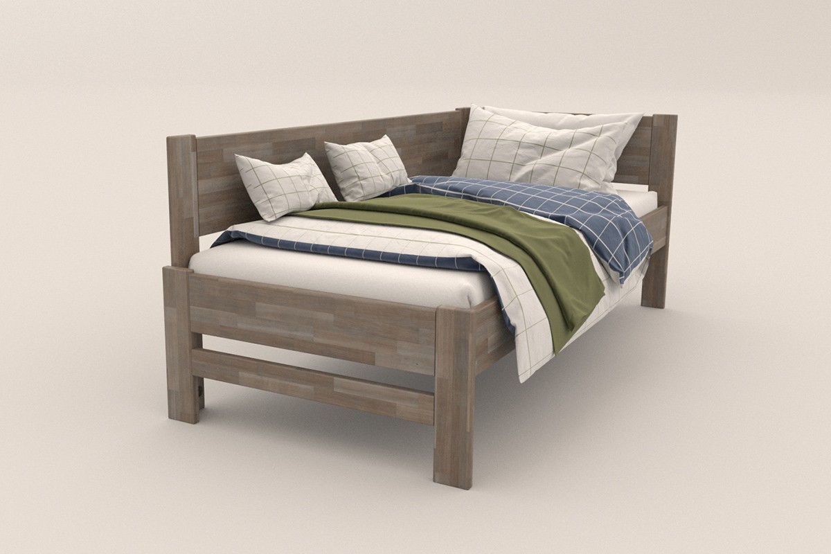 Jednolôžková rohová drevená posteľ Amelia, ľavý roh, prevedenie BO105 šedý granit, 90x200 cm