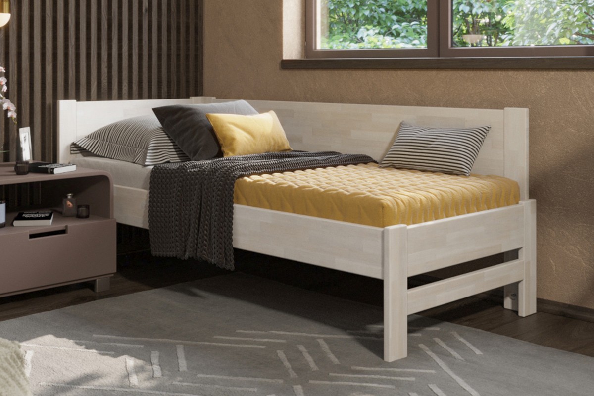 Jednolôžková rohová drevená posteľ Amelia, pravý roh, prevedenie BO102 biela, 90x200 cm