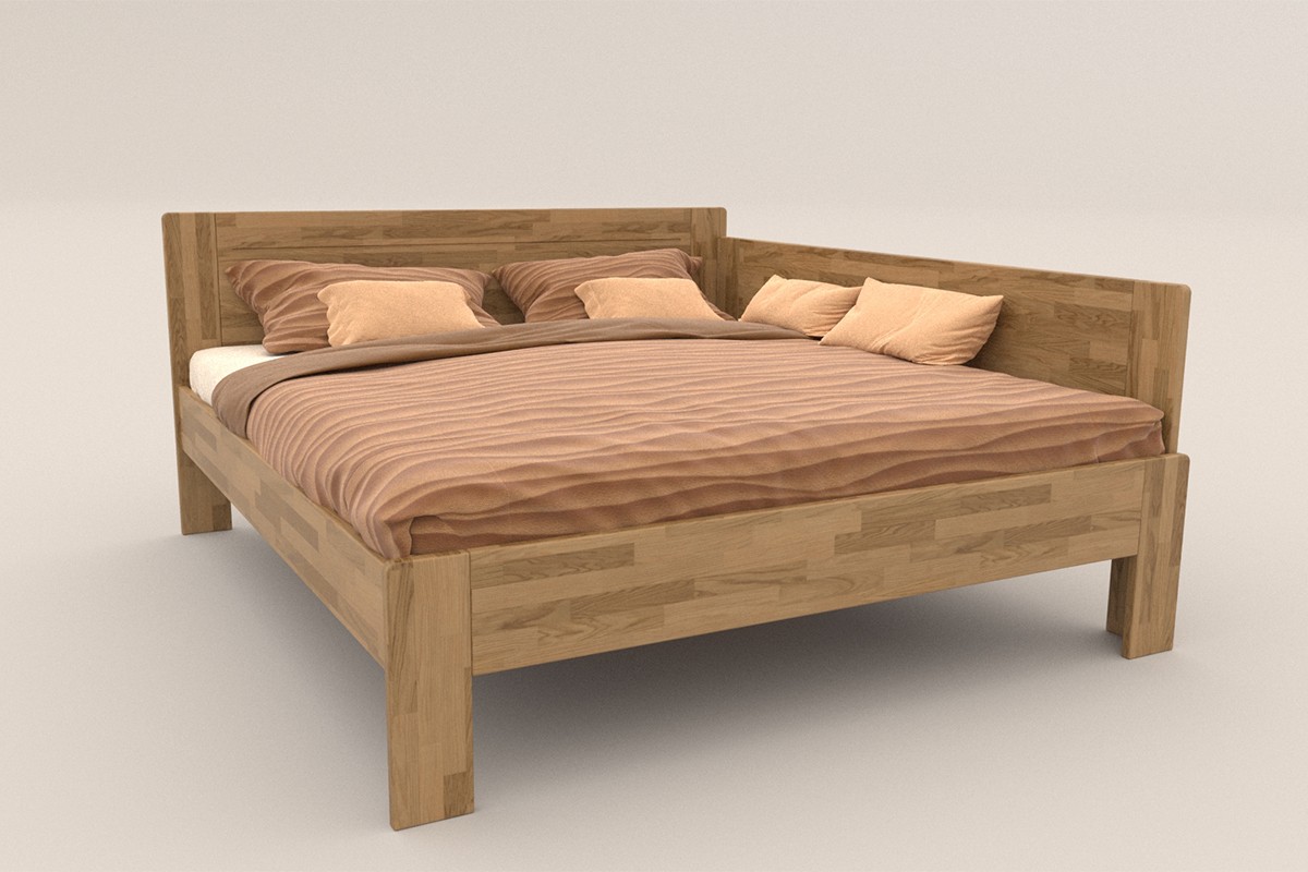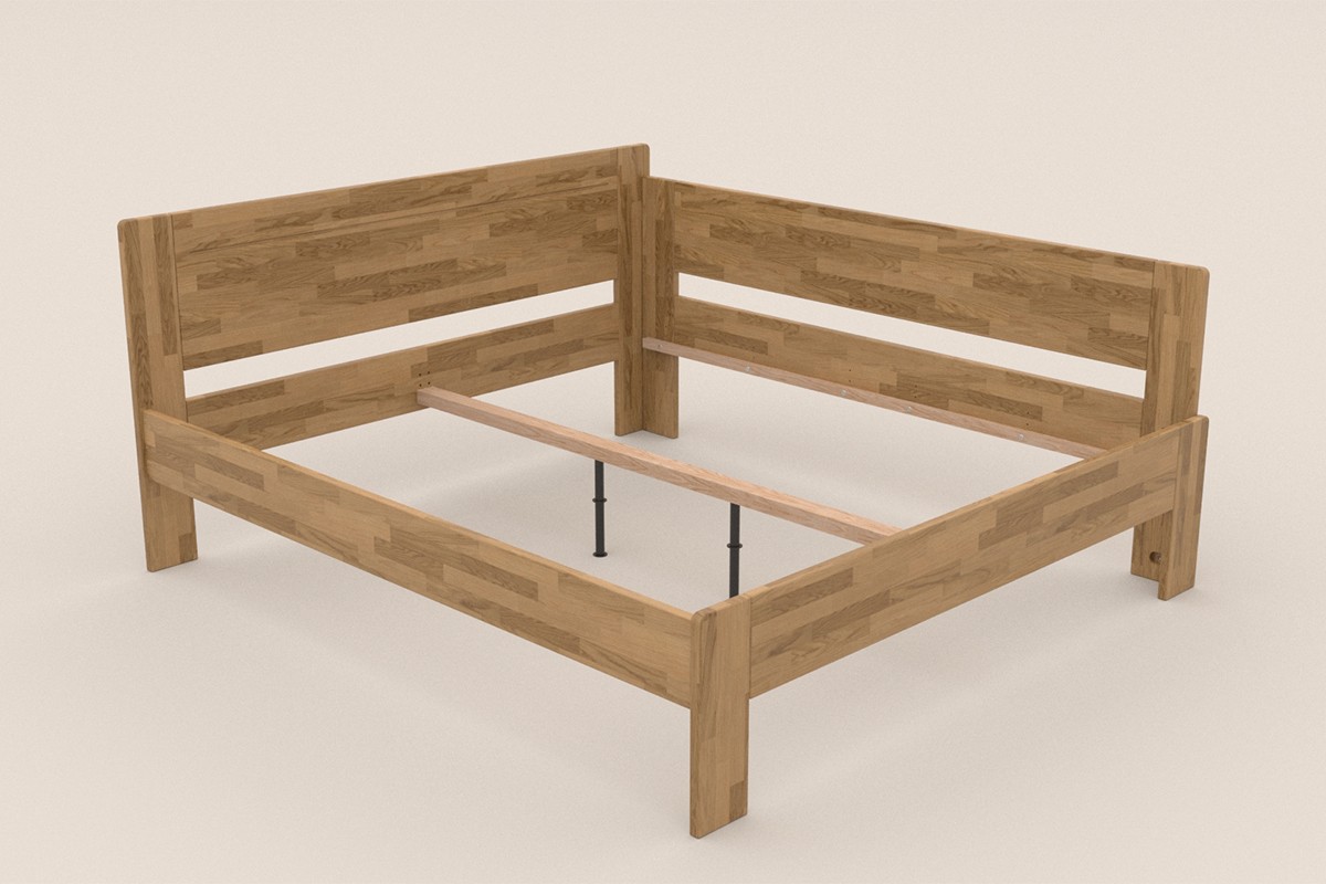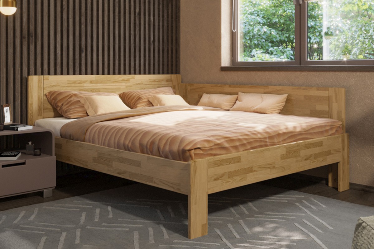 Rohová drevená posteľ Amien, pravý roh, prevedenie D1, dub, 160x200 cm