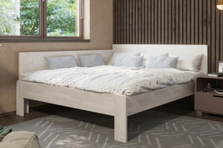 Rohová drevená posteľ Amien, ľavý roh, prevedenie BO102 biela, 180x200 cm