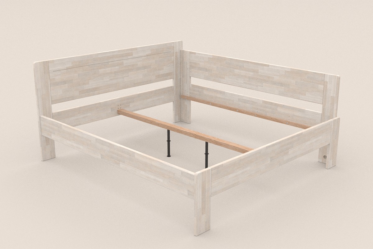 Rohová drevená posteľ Amien, pravý roh, prevedenie BO102 biela, 180x200 cm