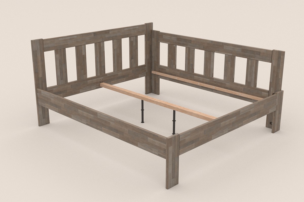 Rohová drevená posteľ Utena, pravý roh, prevedenie BO105 šedý granit, 160x200 cm