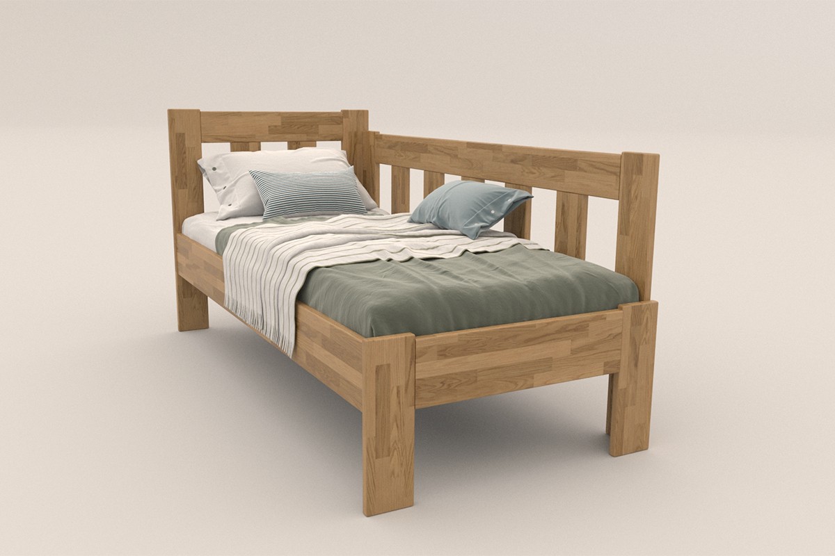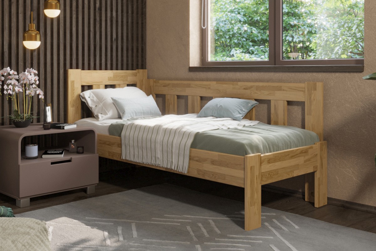 Rohová drevená posteľ Utena, pravý roh, prevedenie D1, 80x200 cm