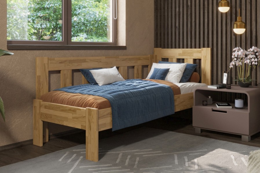 Vzdušná a elegantná posteľ z masívu hodiaca sa takmer do akéhokoľvek interiéru