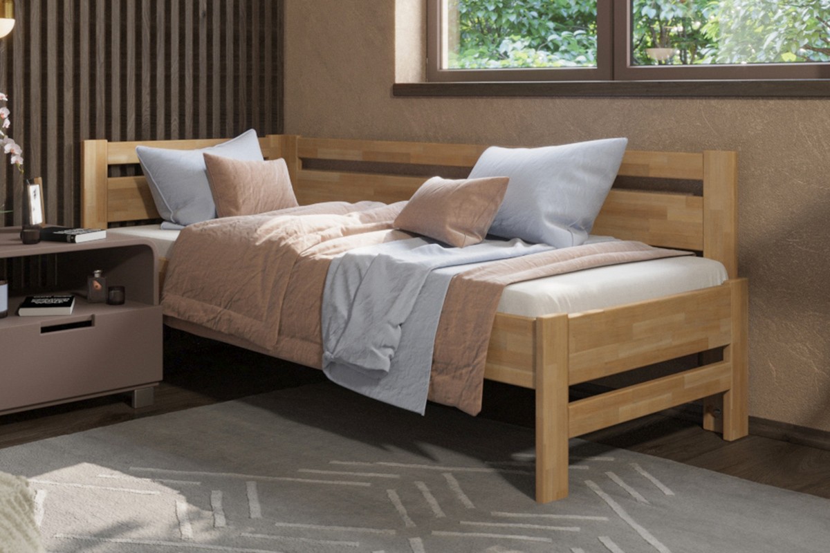 Jednolôžková rohová drevená posteľ Emily, pravý roh, prevedenie BK1, 120x200 cm