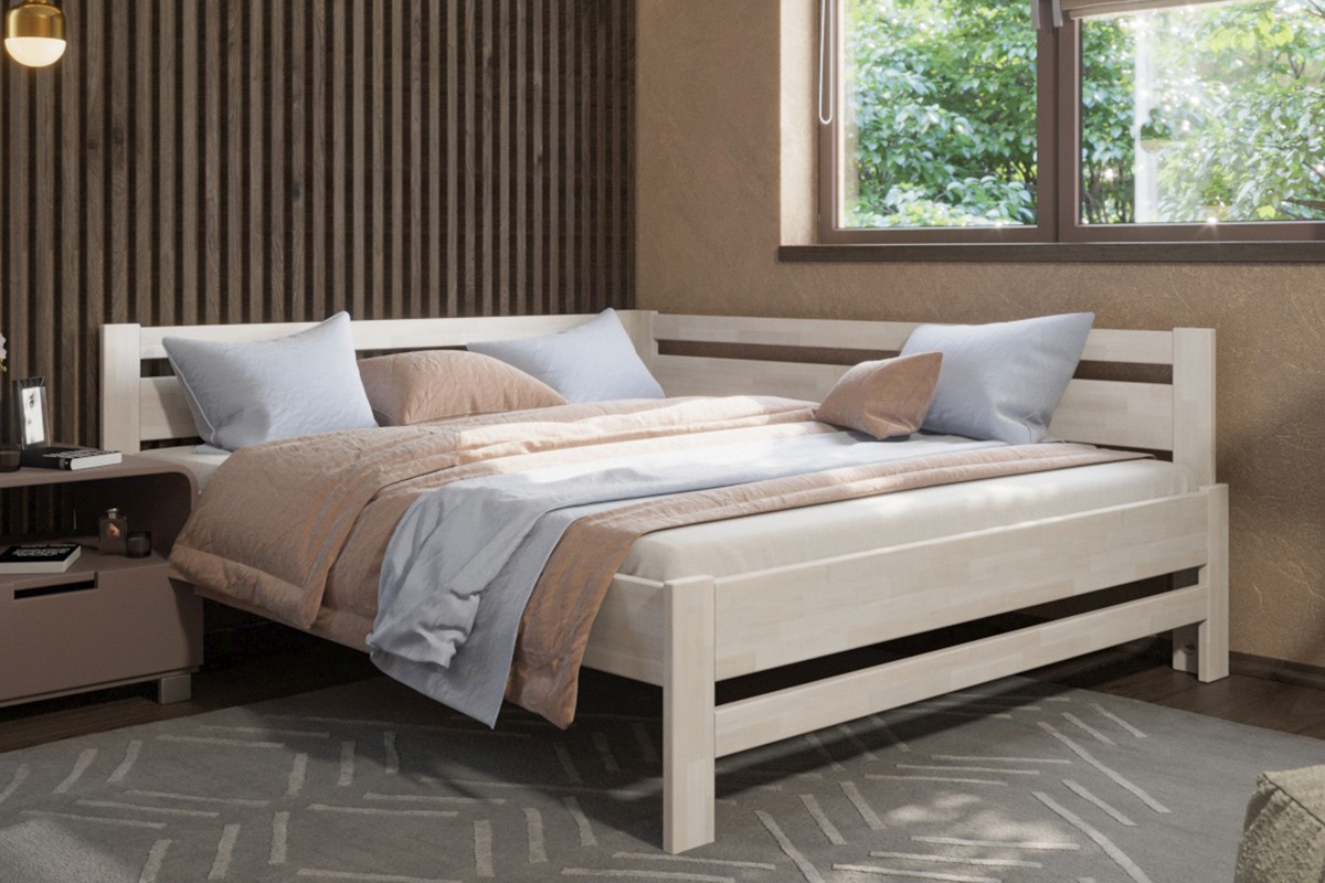 Rohová drevená posteľ Emily, pravý roh, prevedenie BO102 biela, 140x200 cm