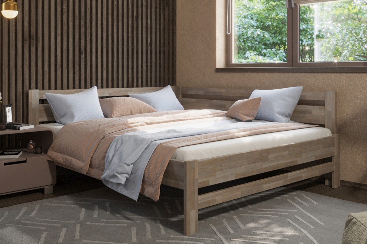 Rohová drevená posteľ Emily, pravý roh, prevedenie BO105 šedý granit, 140x200 cm