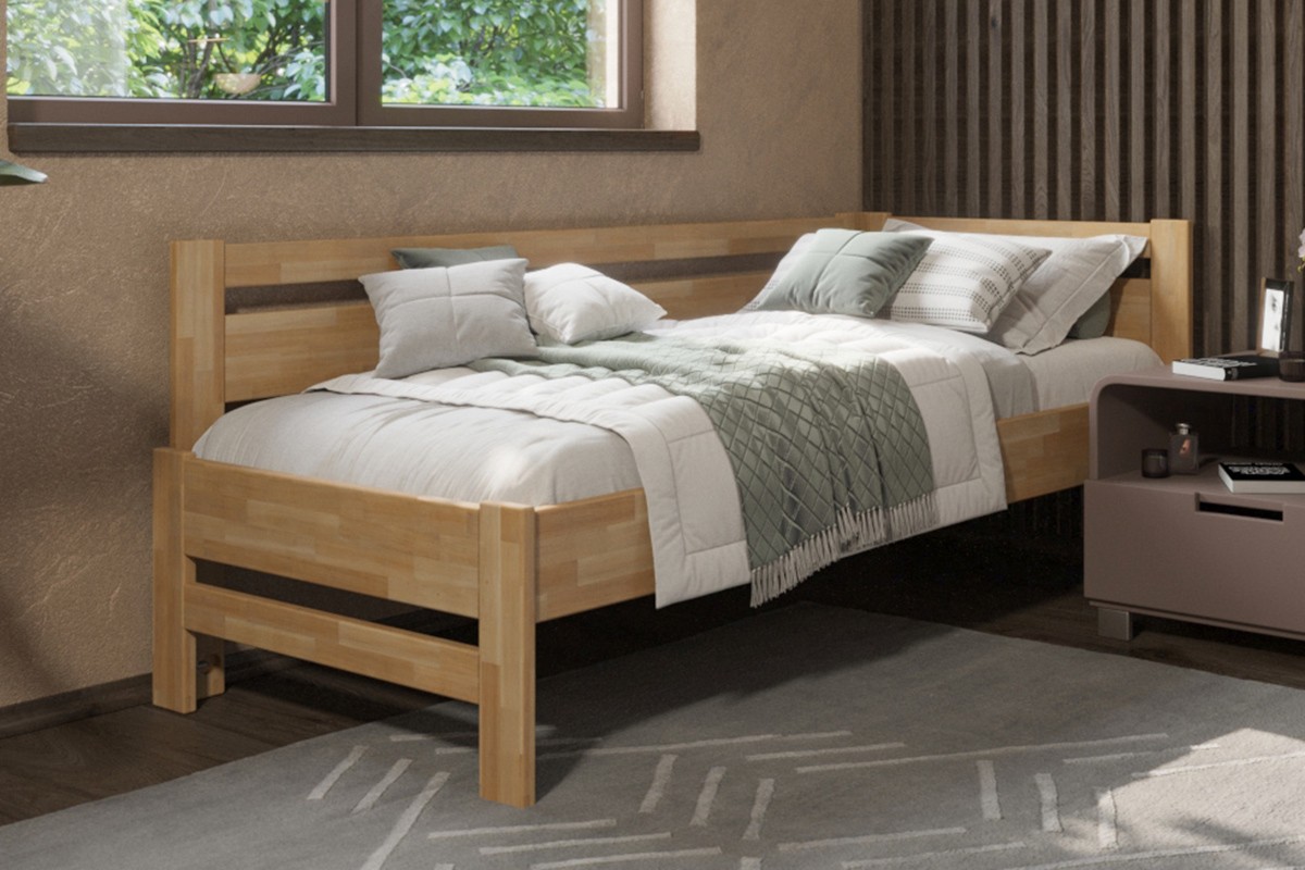 Jednolôžková rohová drevená posteľ Emily, ľavý roh, prevedenie BK1, 90x200 cm