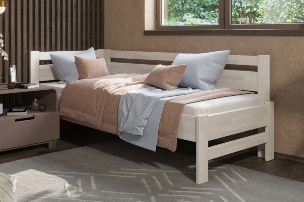 Jednolôžková rohová drevená posteľ Emily, pravý roh, prevedenie BO102 biela, 90x200 cm