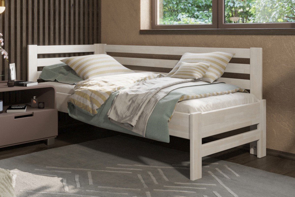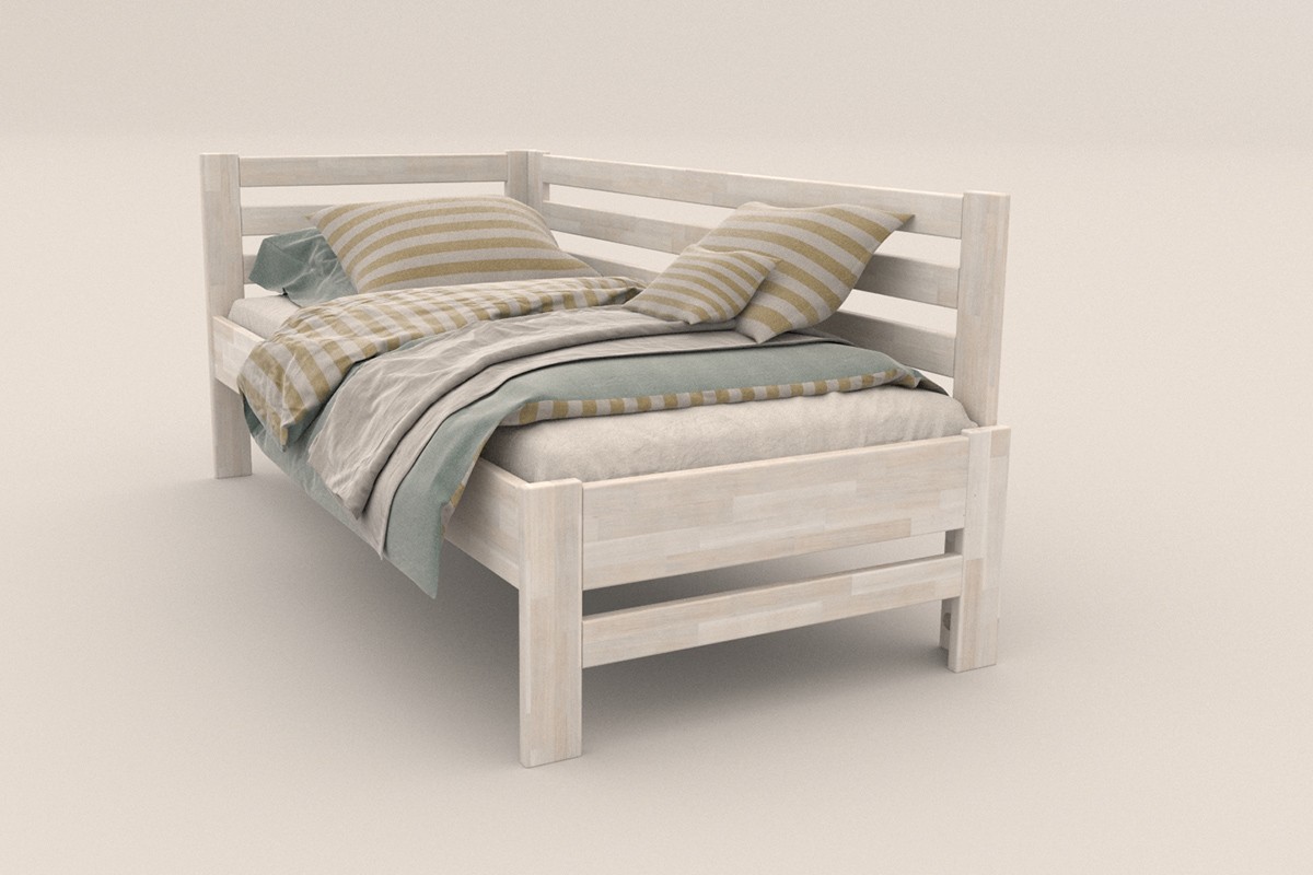 Jednolôžková rohová drevená posteľ Stacy, pravý roh, prevedenie BO102 biela, 120x200 cm