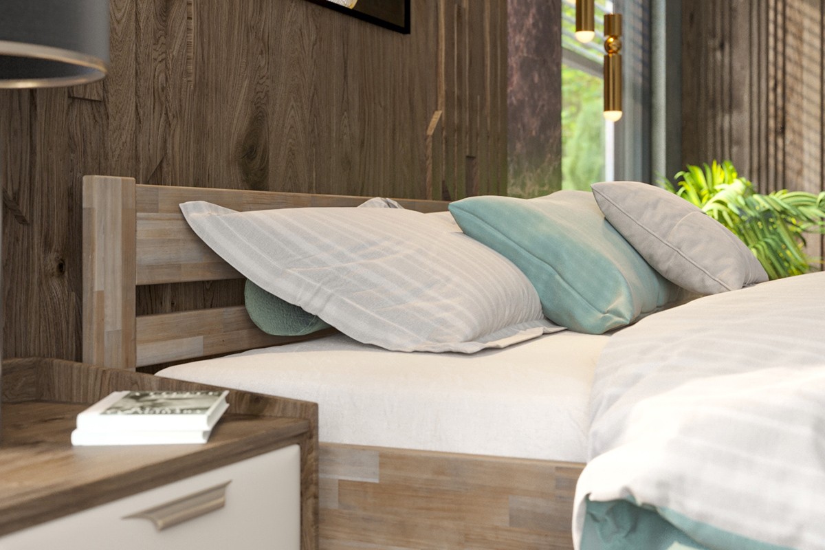 Vyberáte posteľ, ktorá vám vydrží niekoľko desiatok rokov? S celomasívnou posteľou Wanda sa to dá. Nielen, že vám dáme predĺženú záruku 5 rokov na konštrukčnú pevnosť, ale môžete si ju vybrať z tých najkvalitnejších drevín, buku a dubu. Obe dreviny sú spracované cinkovou metódou, čo jednoducho povedané znamená, že sú spracované tak, aby vám posteľ nepopraskala a neskrútila sa.