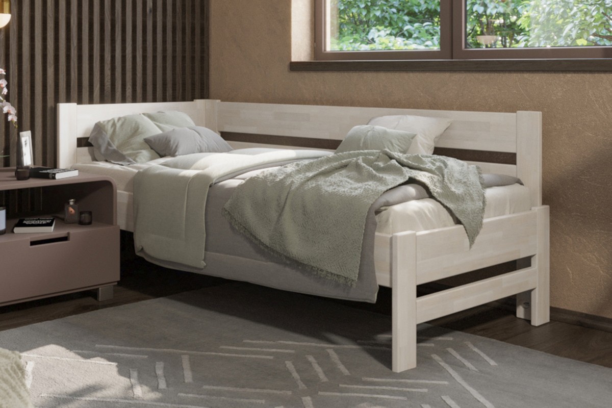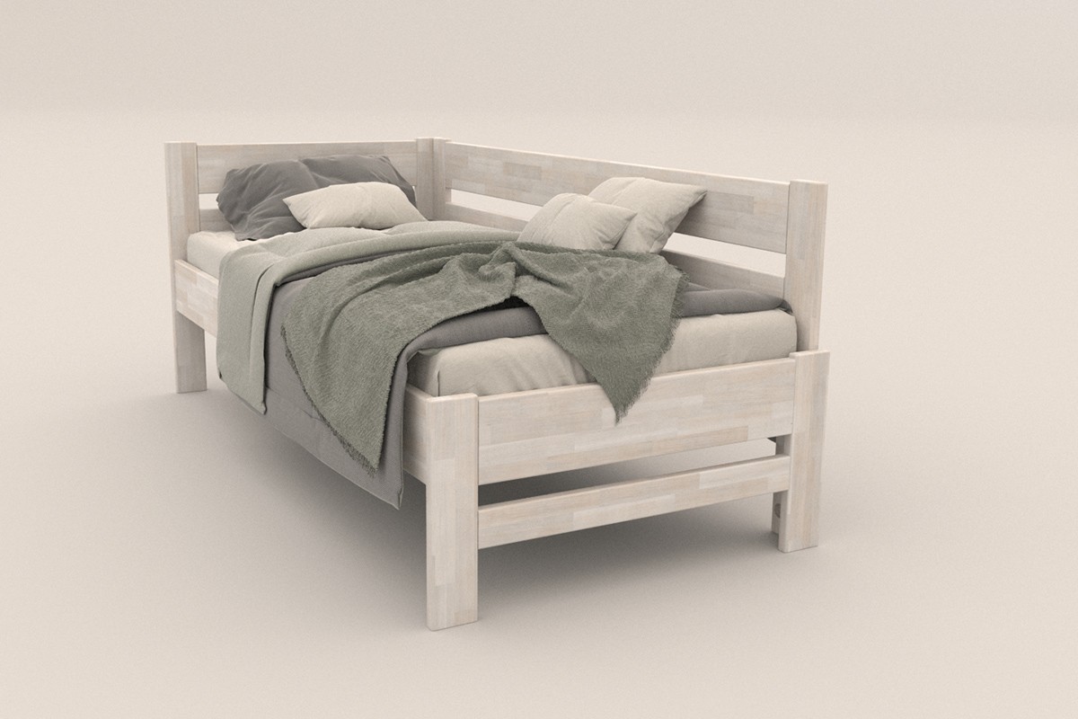 Jednolôžková rohová drevená posteľ Wanda, pravý roh, prevedenie BO102 biela, 90x200 cm