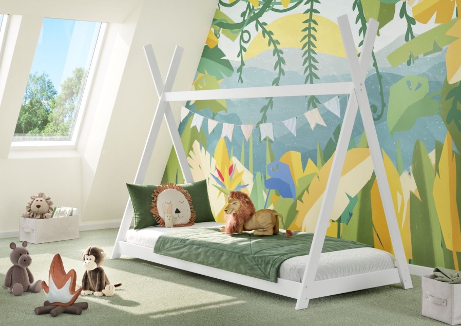 Posteľ Tipi premení každú detskú izbu na čarovné miesto plné fantázie. Malým snílkom poskytne útulné a pohodlné miesto na spanie a vnesie do izby hravú atmosféru. Vďaka masívnemu drevu je konštrukcia postele stabilná, pevná a predovšetkým bezpečná – presne tak, ako má byť pri detskom nábytku. Posteľ Tipi je viac než len nábytok – je to miesto, kde detská predstavivosť dostáva priestor snívať vo veľkom.