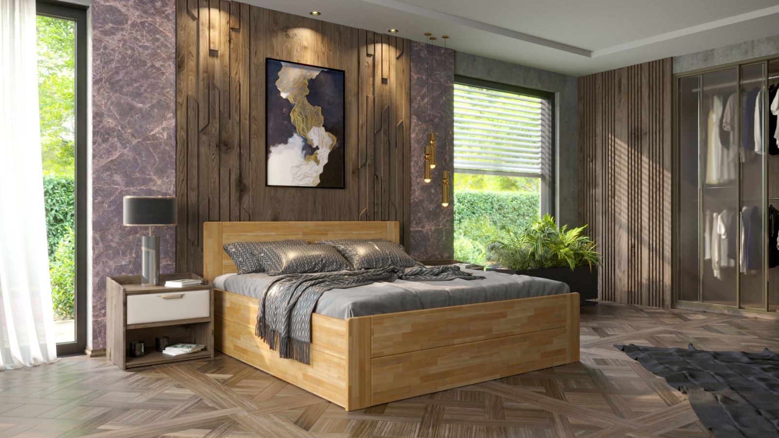 Drevená posteľ Amien, prevedenie box, masív buk, BO101, 180x200 cm
