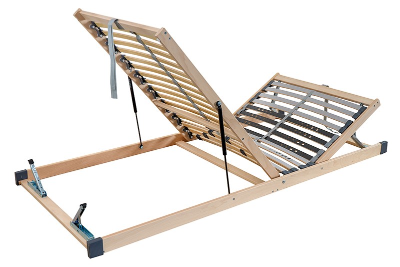 Praktický rošt s možnosťou výklopu v nožnej aj hlavovej časti vám umožní prístup aj do úložného priestoru postele, ktorý funguje na kvalitný piestový mechanizmus. Rošt je možné napolohovať aj vyklopiť pomocou pevného a odolného textilného úchytu, ktorý uľahčí každodennú manipuláciu s lôžkom. Pružné lamely uložené vo dvojiciach v kaučukových puzdrách sú rozložené do 5 anatomických zón. V ramennej oblasti nájdete vŕtané lamely, ktoré zaisťujú nižšiu tuhosť, tým zmierňujú tlak vyvíjaný na ramená. Stredový popruh zlepšuje stabilitu a zvyšuje nosnosť roštu. Posuvnými objímkami je možné individuálne nastaviť tuhosť v bedrovej časti roštu.