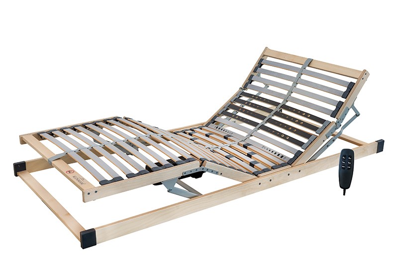 Motorový rošt s kabelovým ovládaním je možné napolohovať podľa vašich potrieb pomocou motora s dvoma nezávislými pohonnými jednotkami v hlavovej aj nožnej časti. Je tak skvelou voľbou pre pohodlné a zdravé spanie. Pružné lamely uložené vo dvojiciach v kaučukových puzdrách sú rozložené do 5 anatomických zón. V ramenné oblasti nájdete vŕtané lamely, ktoré zaisťujú nižšiu tuhosť, tým zmierňujú tlak vyvíjaný na ramená. Stredový popruh zlepšuje stabilitu a zvyšuje nosnosť roštu. Posuvnými objímkami je možné individuálne nastaviť tuhosť v bedrovej časti roštu.