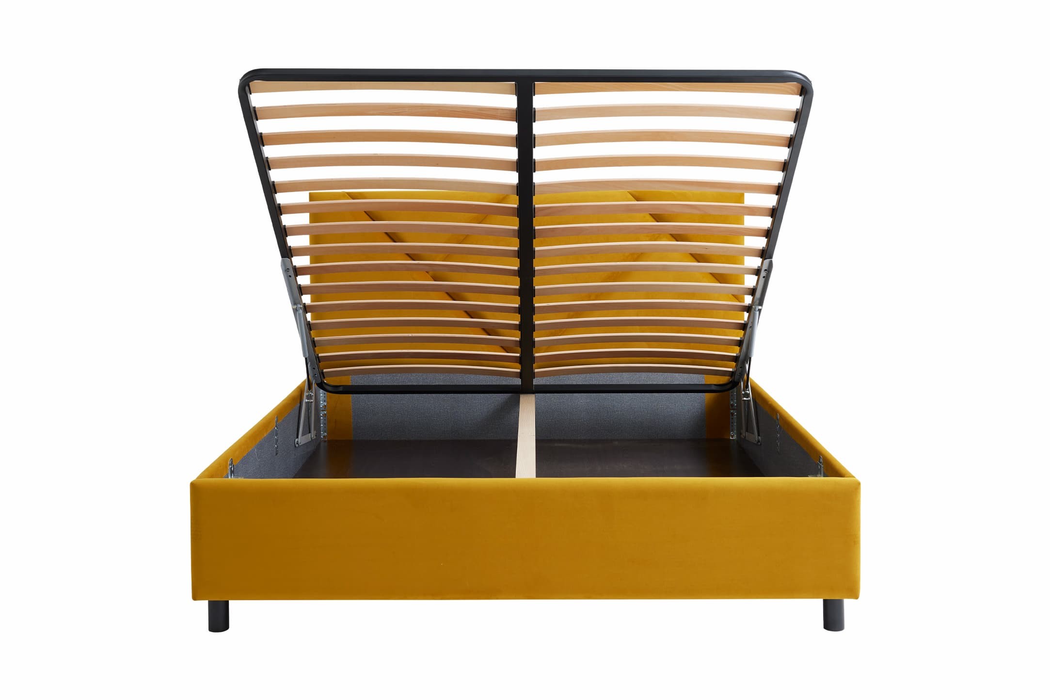 Rámová základňa FRAME STORAGE obsahuje úložný priestor, do ktorého môžete uložiť všetko, čo budete potrebovať. Dosky sú vyrobené z vysokokvalitnej MDF dosky, ktorá je odolná, a sú umiestnené na kovovej výstuhe základne pre zvýšenie nosnosti a stability. Tento typ základne neobsahuje rošt, takže je vhodný napríklad pre zákazníkov, ktorí uprednostňujú polohovateľné rošty.
