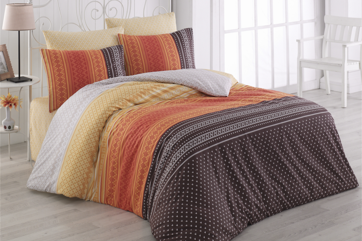 Oranžovo-hnedé obliečky s pleteným vzorom z Renforcé bavlny, 140x200 cm + 50x70 cm