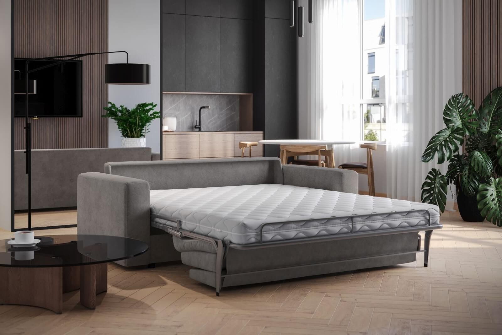 Súčasťou sedačky je štandardne matrac z HR peny s výškou 16 cm, ktorá je odolná proti deformácii. Sedačka disponuje novým, pokročilým mechanizmom, ktorý vám ľahko umožní premeniť Vašu pohovku na veľmi pohodlné lôžko. Obsluha večerného rozkladania a ranného skladania je mimoriadne jednoduchá a ľahká. Po rozložení odhalíte pohodlnú posteľ s 16 cm vysokým matracom a o rozmere 140x190 cm.
