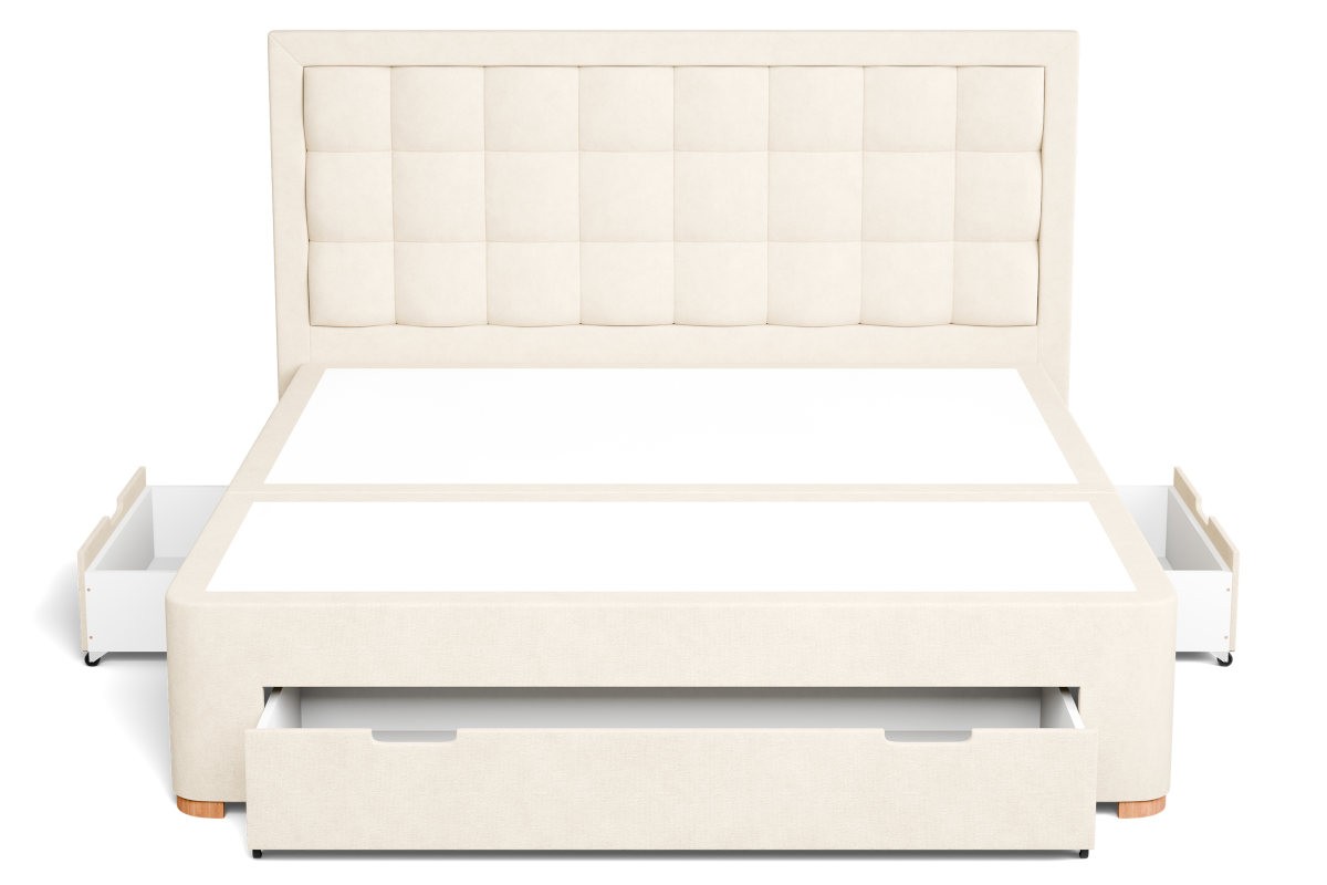 Základňu BOX DRAWERS tvorí kvalitné pružinové jadro. Vďaka nemu matrac, ktorý je na nej položený, krásne dýcha. Pružiny zaisťujú svojou vzdušnosťou odvod prebytočnej vlhkosti, a tým znižujú riziko plesní a mikroorganizmov v posteli. Pod pružinovým jadrom nájdete úložný priestor v podobe zásuviek. Toto praktické riešenie neuberá boxspringovej posteli na dizajne a všetko je zladené.
