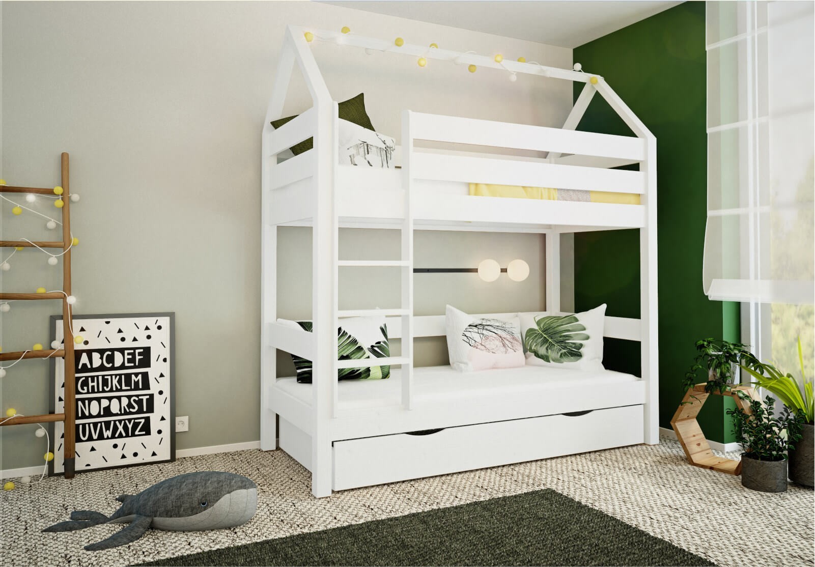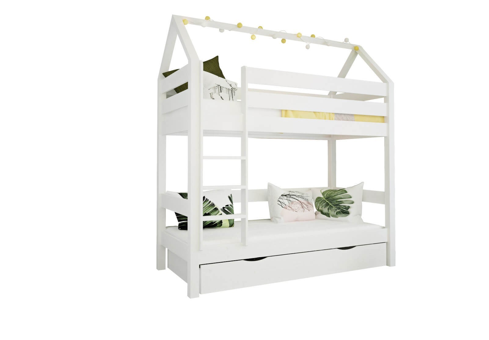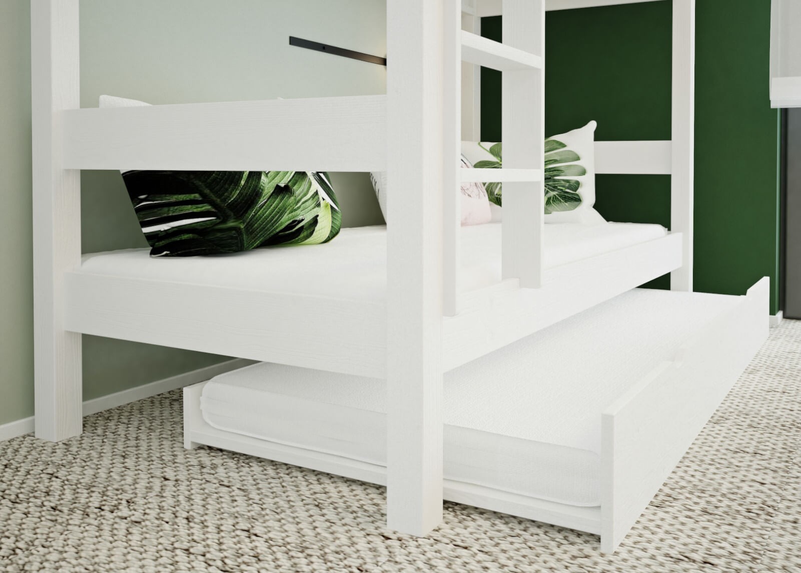Biela posteľ z masívu borovica Aaron s prístelkou, 90x200 cm