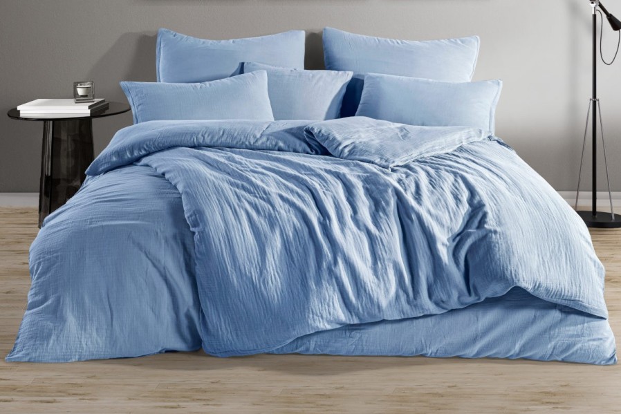 Prémiové mušelínové obliečky, farba světlo modrá, 140x200 cm + 70x90 cm