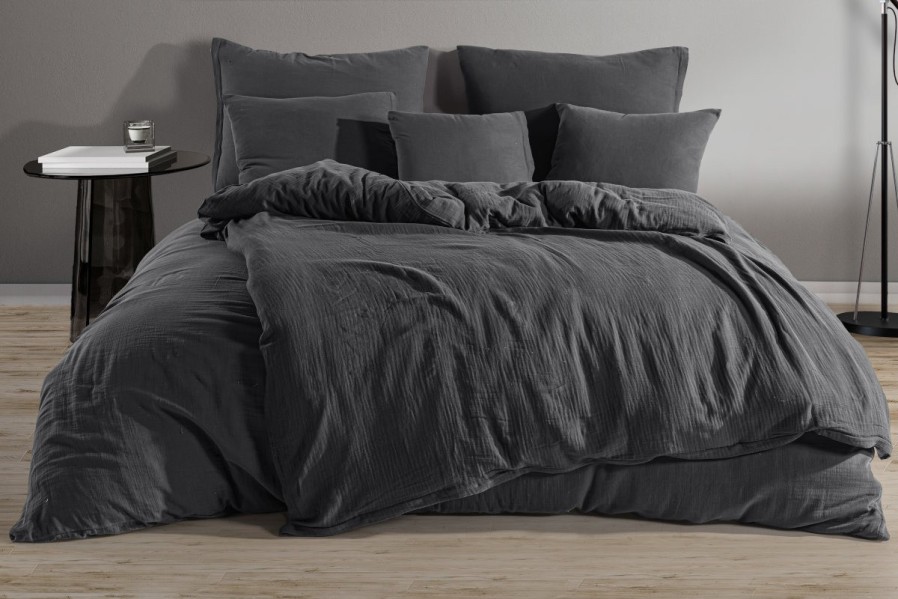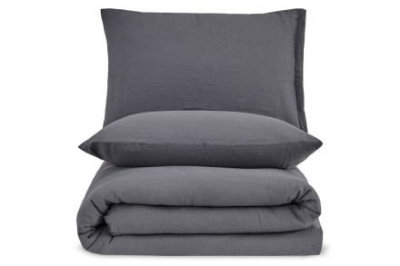 Prémiové mušelínové obliečky, farba tmavošedá, 140x200 cm + 70x90 cm