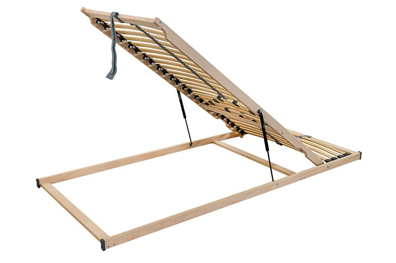 Rošt s výklopom nožnej časti pomocou piestu s prístupom do celého úložného priestoru. Rošt je možné zdvihnúť pomocou textilného úchytu. Lamely sú uložené po dvojiciach v kaučukových puzdrách, ktoré sú pružné a odolné. Sú zároveň rozložené do 3 anatomických zón na optimálny pocit opory a komfortu. Stredový popruh zlepšuje stabilitu a nosnosť roštu, posuvné objímky slúžia na individuálne nastavenie tuhosti v bedrovej časti.