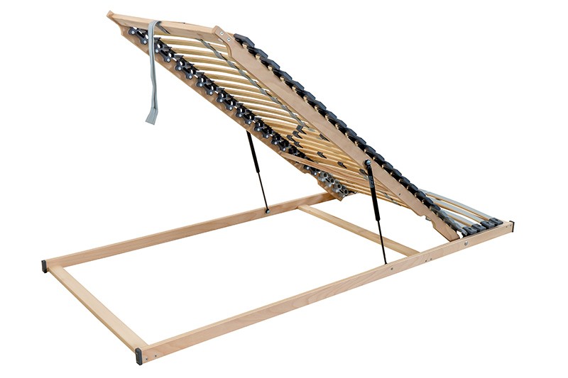 Vysoko odolný posteľový rošt Klinmam Elite P s puzdrami uloženými nad bočnicou poskytuje vysokú úroveň komfortu pri spánku. Rošt je možné pomocou piestového mechanizmu vyklopiť v nožnej časti roštu pre ľahký prístup do celého úložného priestoru vašej postele. Špeciálne uložené kaučukové výkyvné puzdrá zaisťujú vyššiu nosnosť a odolnosť voči náhlej záťaži, ktorá by mohla rošt poškodiť. Lamely sú rozložené do celkom 7 anatomických zón, natáčajú sa a zároveň reagujú na všetky pohyby tela pri spánku. Zmäkčené lamely v ramennej oblasti poskytnú vynikajúcu oporu chrbtici aj pri spánku na boku. Stredový textilný popruh zvyšuje nosnosť a zaisťuje vyššiu stabilitu roštu. Posuvné objímky v bedrovej časti slúžia na individuálne nastavenie tuhosti. Foliované lamely zabraňujú prenikaniu vlhkosti a parazitov do roštu, zaisťujú jednoduchú údržbu produktu a zároveň sú vďaka tomuto ošetreniu vhodné aj pre alergikov a astmatikov. Navyše sa nemusíte báť ani poškodenia poťahu matraca, ktorý je v priamom kontakte s roštom.